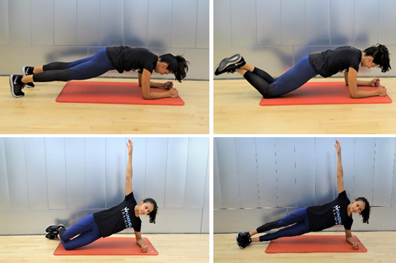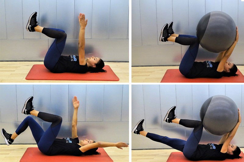 Si no t’agraden o no se’t donen bé les planxes, existeixen altres exercicis per treballar la musculatura profunda del Core. Aquest exercici ens ajudarà a enfortir el transvers abdominal, els oblics i el sòl pèlvic, mantenint la columna i la pelvis en una posició neutral. És un exercici molt complet perquè podem involucrar també braços, glutis i cames, mantenint l’esquena protegida. Podem fer diferents variants que ens seran més fàcils de realitzar, per exemple, sense moure els braços, com es veu a la segons foto, mantenint les mans contra els genolls o recolzant una cama en el terra.