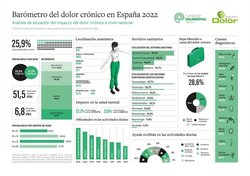 1 Barómetro del dolor crónico en España 2022 Análisis de situación del impacto del dolor crónico a nivel nacional.  Fundación Grünenthal y el Observatorio del dolor de la Universidad de Cádiz