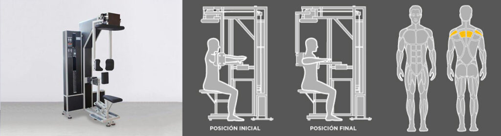 En aquest exercici enfortim dorsal major, bíceps braquial, romboides i trapezi. És un exercici que influeix en la postura i en l’estabilització de les escàpules. Realitzarem l’exercici mantenint els colzes el més a prop possible del cos i evitant pujar les espatlles.