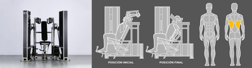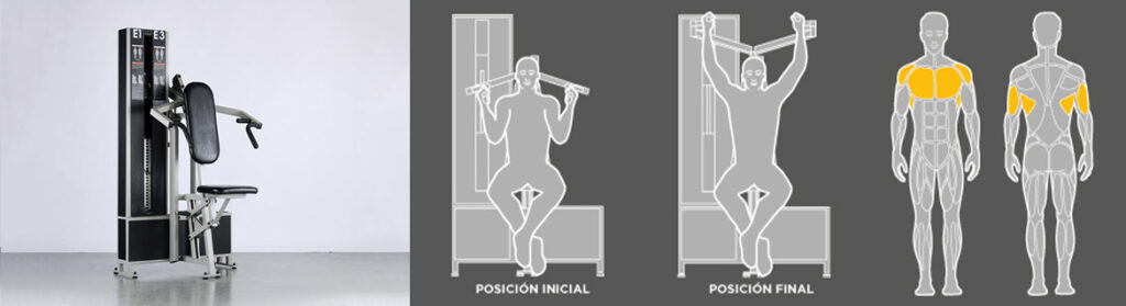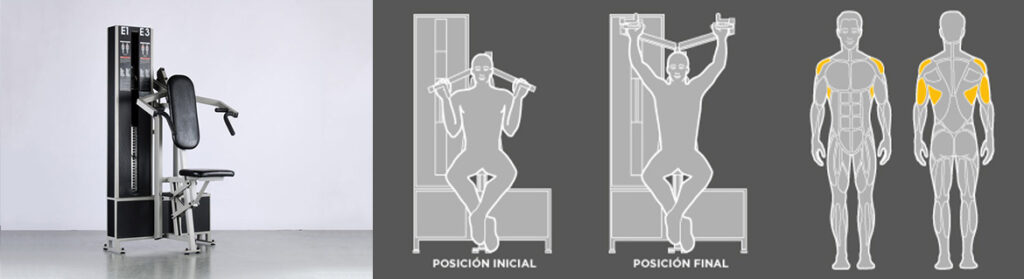 En aquest exercici enfortim dorsal ample. Aquest múscul és important perquè a més d’ajudar-nos a mantenir una postura recta i corregir desequilibris musculars, contribueix també a fer descendir el cap de l’húmer evitant el pinçament subacromial. En persones amb simptomatologia retallarem el moviment sense recuperar l’alçada de la barbeta.