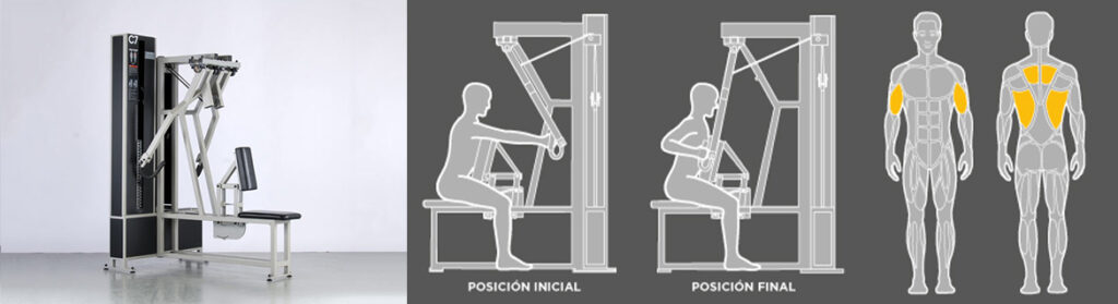 En aquest exercici enfortim dorsal major, bíceps braquial, romboides i trapezi. És un exercici que influeix en la postura i l’estabilització de les escàpules. Realitzarem l’exercici mantenint els colzes el més a prop possible del cos.