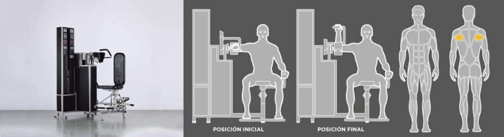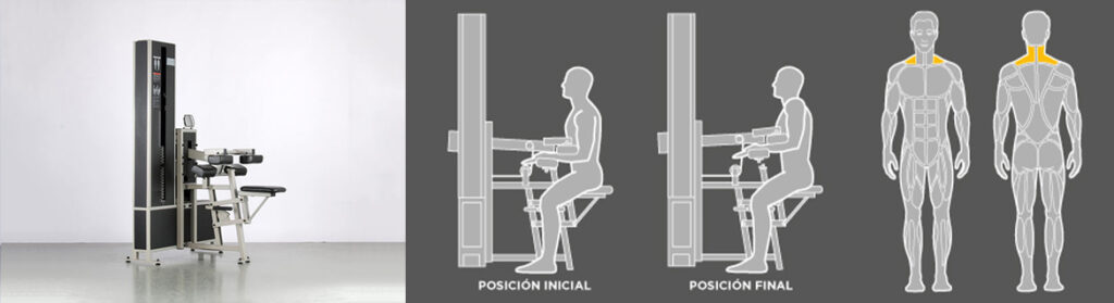 En aquest exercici enfortim deltoides superiors, romboides i trapezi mitjà. És un exercici que beneficia molt la nostra postura corporal, evitant la tendència a llençar les espatlles cap a davant. Els deltoides fa que tota l’àrea de les espatlles sembli més rodona i són molt important per estabilitzar l’articulació durant l’aixecament de pesos o quan realitzem moviments de tracció.