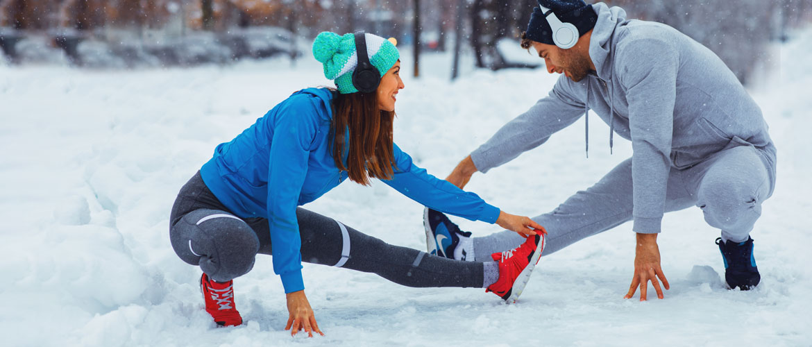 Atención al frío. A nuestro cuerpo le cuesta más conseguir la temperatura óptima para realizar ejercicio en invierno, sobre todo si entrenamos fuera. Esto puede provocar un aumento de las lesiones en nuestros músculos, tendones, ligamentos y articulaciones. Por este motivo, debemos dar mucha importancia al calentamiento y los estiramientos, especialmente en esta época del año, de esta manera tendremos menos posibilidades de sufrir una lesión. También es importante realizar una buena vuelta a la calma después de nuestra sesión. En invierno, los músculos se enfrían muy rápido, por lo que los desechos procedentes de la contracción muscular no se eliminan correctamente. Es importante no acabar de golpe nuestra sesión y dedicar un tiempo a seguir moviéndonos, bajando el ritmo antes de estirar de nuevo.