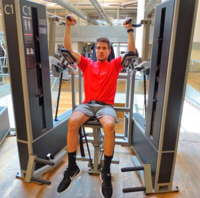 Fortalecimiento de pectoral mayor, tríceps braquial y trapecio inferior para ganar fuerza en la extremidad superior por el uso de caminadores y/o muletas.