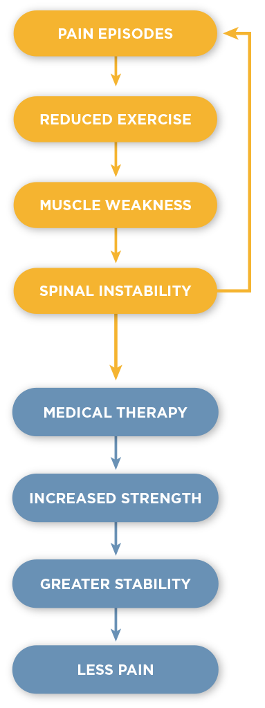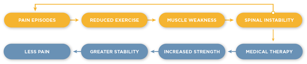 Pain often triggers a process of physical deconditioning: activity levels decrease, muscle weakness develops, and instability increases, particularly in the spine. This vicious cycle not only perpetuates pain but can also intensify it over time.