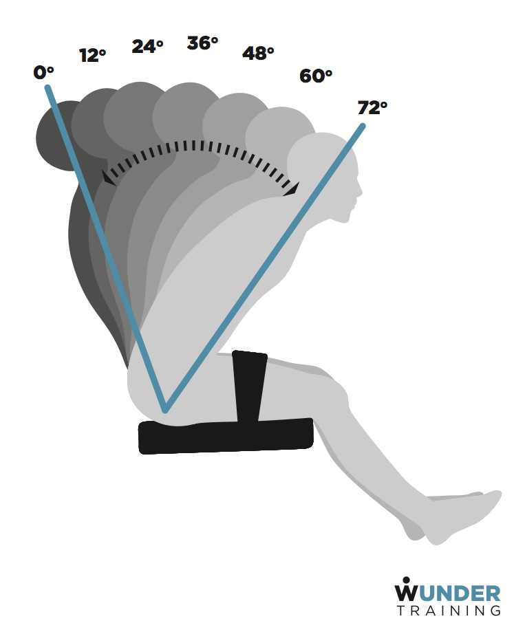 En cambio, la amplitud de movimiento normal con la pelvis inmovilizada es únicamente de 72°. Cuando se inmoviliza la pelvis, los músculos profundos de la espalda en la región lumbar se aíslan y la cadera y los músculos de las piernas no pueden intervenir para ayudar durante el movimiento. Para conseguir un fortalecimiento eficaz de estos músculos profundos de la espalda, es esencial aislarlos y la máquina de terapia lumbar hace precisamente esto.