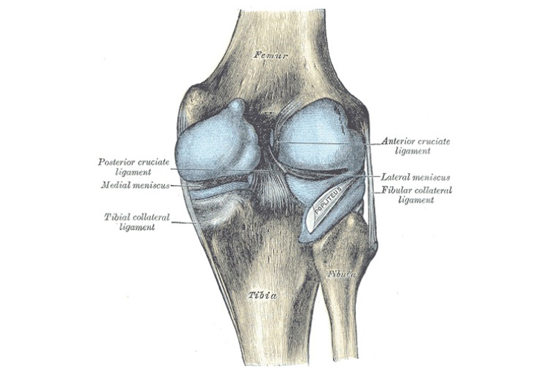 La rodilla dispone de varios ligamentos que aseguran su estabilidad y evitan movimientos excesivos. Los ligamentos que están en el interior de la cápsula articular se llaman intraarticulares, entre los que se encuentra el ligamento cruzado anterior y el ligamento cruzado posterior. Por otra parte, los ligamentos que están por fuera de la cápsula articular se llaman extraarticulares, como el ligamento lateral interno y el ligamento lateral externo.