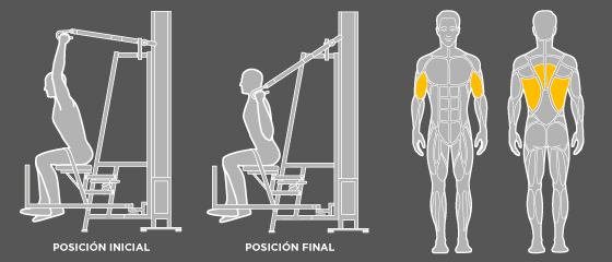 Músculo trapecio inferior, músculo dorsal mayor y músculo bíceps braquial