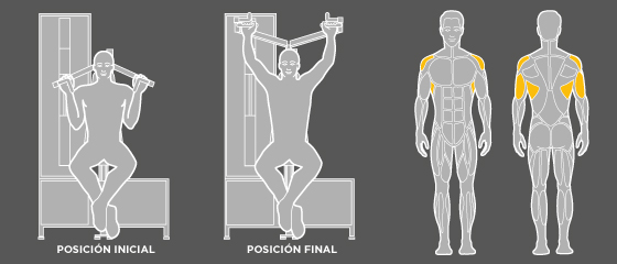 En este equipo se consigue estirar de forma activa toda la cadena muscular lateral del cuerpo.