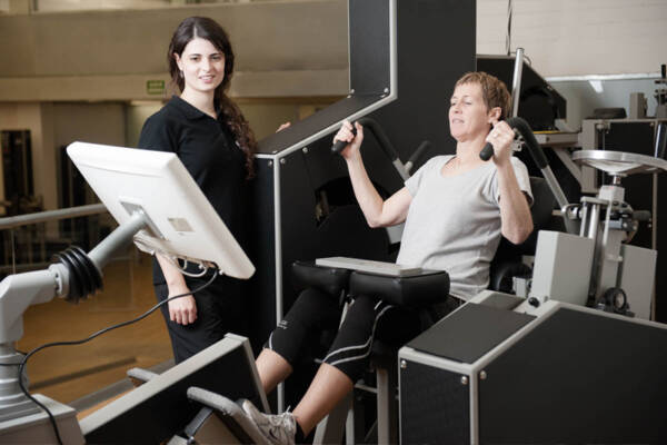 Un médico especializado evalúa el historial clínico, las pruebas de imagen y el estado funcional del paciente. - Entrenamiento de musculatura profunda mediante máquinas médicas.