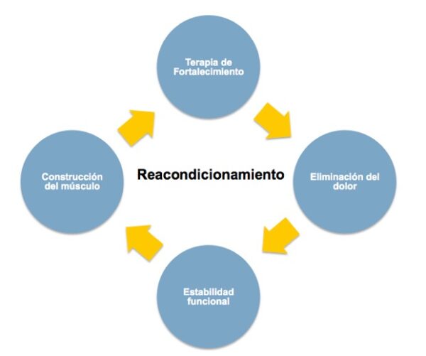 Para salir del “círculo vicioso” del síndrome de desacondicionamiento físico es necesario incrementar la capacidad funcional. Concretamente es necesario mejorar la fuerza, la movilidad y la actividad metabólica de las estructuras afectadas (en este caso, la columna vertebral y los músculos de la espalda).