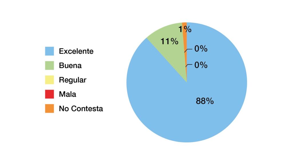 - Más del 95% lo valoran entre “Bueno” y “Excelente”