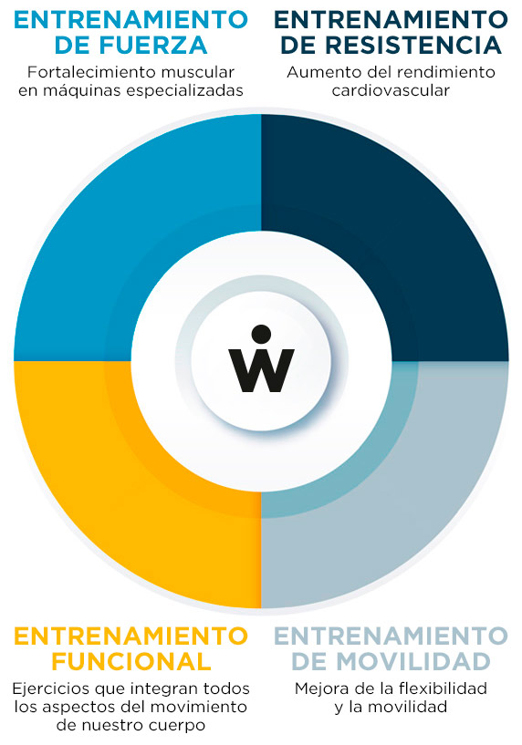 - Entrenamiento funcional: trabajo global y sin máquinas con ejercicios que integran todos los aspectos del movimiento del cuerpo.